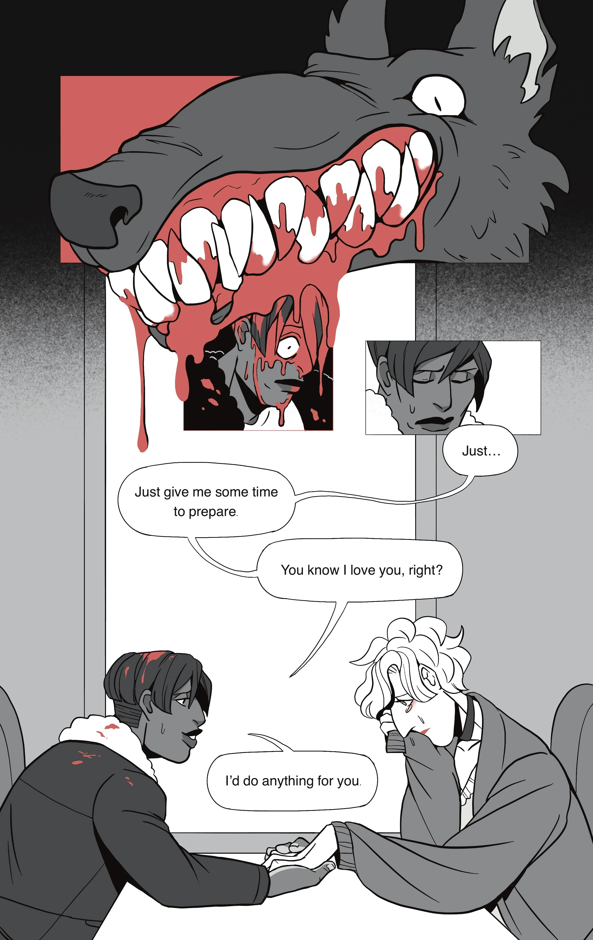 Andrea has been given an ultimatum by her partner: Devour his flesh or breakup with him! Facing such an impossible choice, does Andrea have enough dog in her to save her relationship? A fun and gory little trip about emotional intimacy and silly dogs to find out the answer.